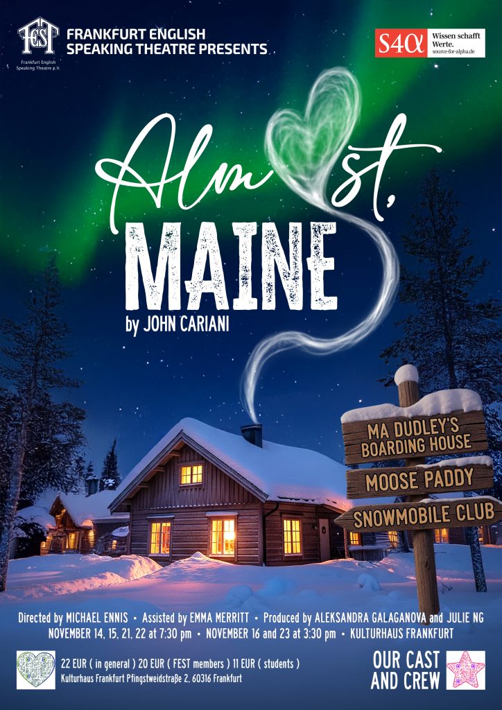 Save the date!!! Almost, Maine, directed by Michael Ennis, will have performances on November 14, 15, 16 and 21, 22, 23.